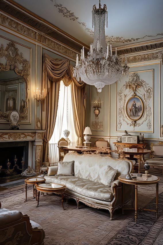 Crystal chandeliers, brass sconces, and lantern-style pendant lights are commonly found in classic interiors. These fixtures serve both functional and decorative purposes, casting warm light and enhancing the room’s ambiance.